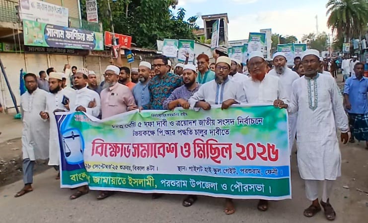 পরশুরাম প্রতিনিধি : পিআর পদ্ধতিসহ ৫দপা দাবী বাস্তবায়নের লক্ষ্যে কেন্দ্র ঘোষিত কর্মসূচির অংশ হিসাবে পরশুরামে জামায়াতের বিক্ষোভ মিছিল ও সমাবেশ করেছে।