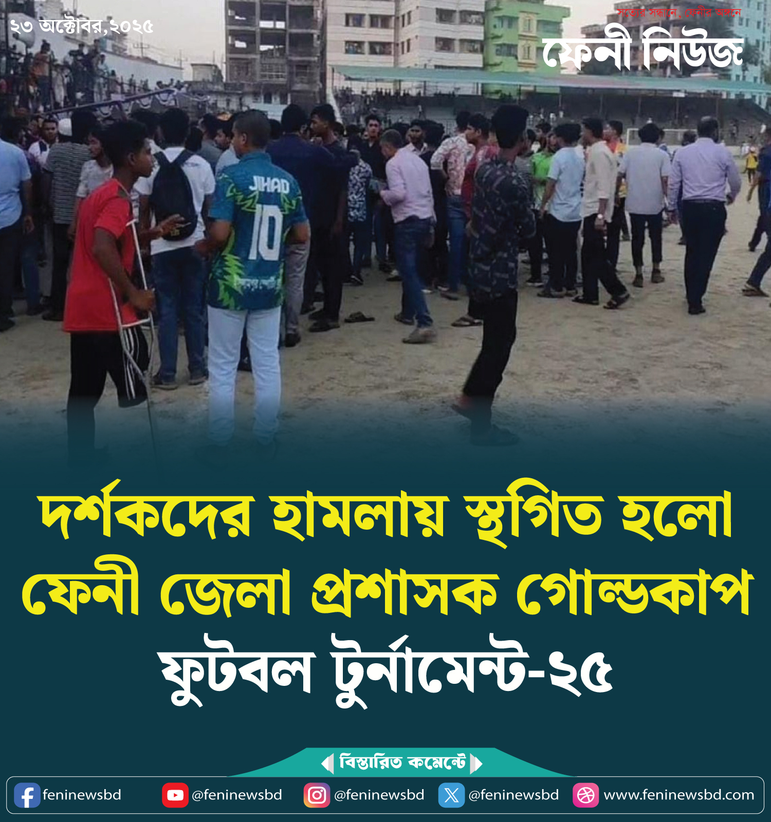 বুধবার (২২ অক্টোবর) সন্ধ্যায় ফেনী শহরের ভাষা শহীদ আবদুস সালাম স্টেডিয়ামে এই ঘটনা ঘটে। এর ফলে বৃহস্পতিবারের ফেনী সদর উপজেলা দল ও ছাগলনাইয়া উপজেলা দলের মধ্যকার সেমিফাইনাল ম্যাচ স্থগিত করা হয়েছে।